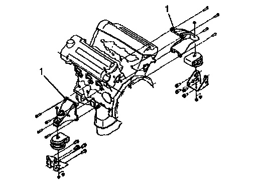 32. Disconnect engine side mounting brackets (1) to engine mountings.