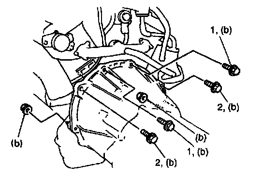 Transmission to cylinder block bolt and nut (b): 85 Nm (8.5 kg-m, 61.5 ft. lbs.)