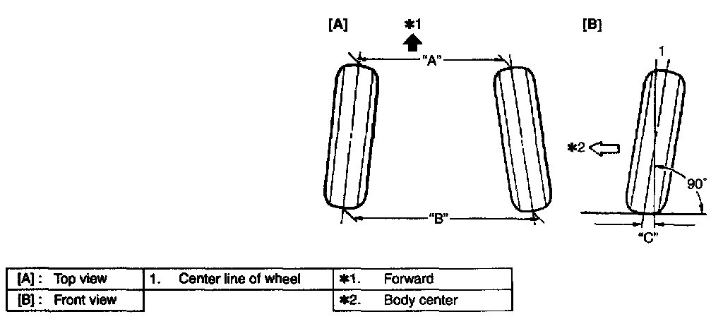 Toe-in (Toe-in gauge measurement)"B" - "A":