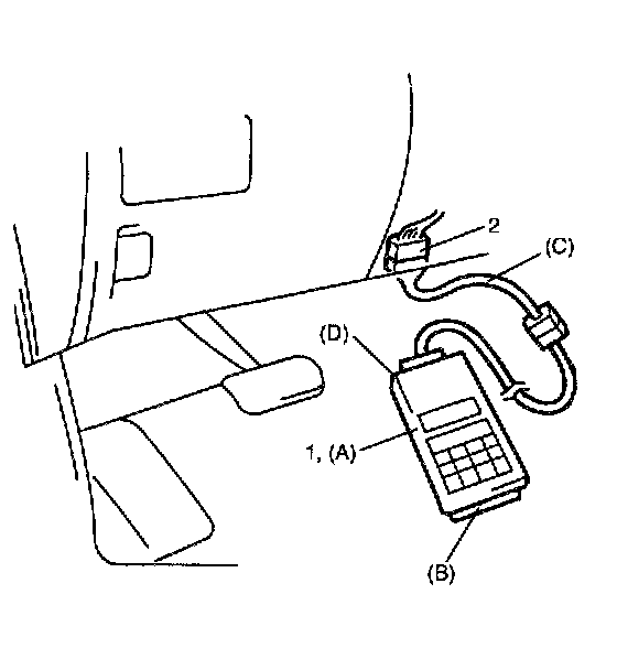 3. Connect SUZUKI scan tool (1) to DLC (2) and turn ignition switch to ON position. Repair any DTCs prior to starting automated bleeding.