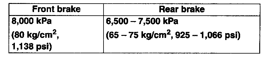 ^ Repeat steps 4) and 5) until rear brake pressure is within specification.