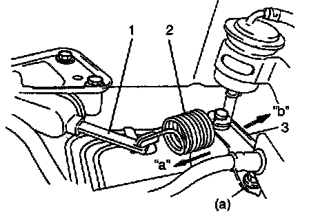 ^ If rear brake pressure is higher than specification, move stay to direction "a" and if it is lower, to direction "b".