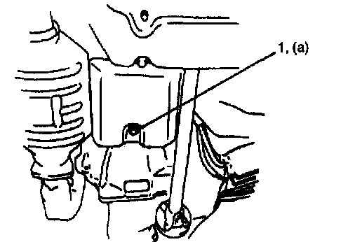 2. With engine is cool, remove drain plug (1) from oil pan and drain A/T fluid.