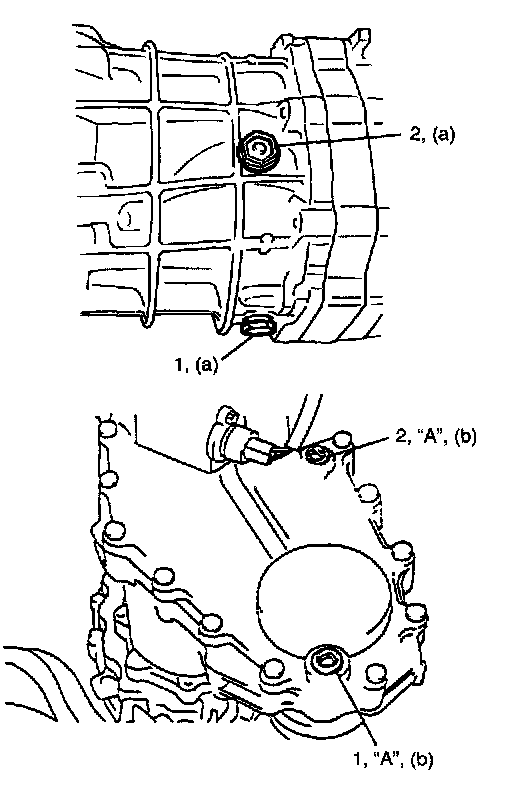 Oil drain plug and level/filer plug (on transmission case) (a): 38 Nm (3.8 kg-m, 27.5 ft. lbs.)