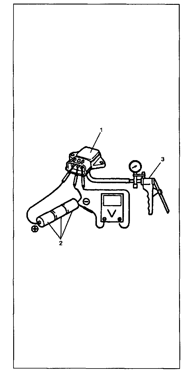 2. Arrange 3 new 1.5 V batteries (2) in series and connect its positive terminal to "Vin" terminal of MAP sensor (1) and negative terminal to "Ground" terminal. Then check voltage between "Vout' and "Ground".