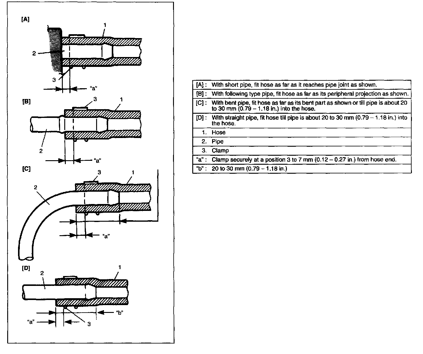 - Fuel or fuel vapor hose connection varies with each type of pipe. When reconnecting fuel or fuel vapor hose, be sure to connect and clamp each hose correctly referring to figure.