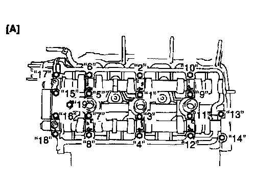 After applying oil to housing bolts, tighten them temporarily first. Then tighten them by following sequence ("1" - "19") as shown in the figure. Tighten a little at a time and evenly among bolts and repeat tightening sequence 2 or 3 times before they are tightened to specified torque below.