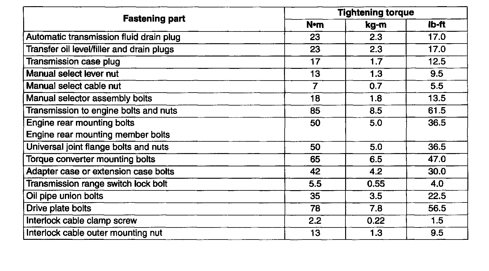 TIGHTENING TORQUE SPECIFICATIONS