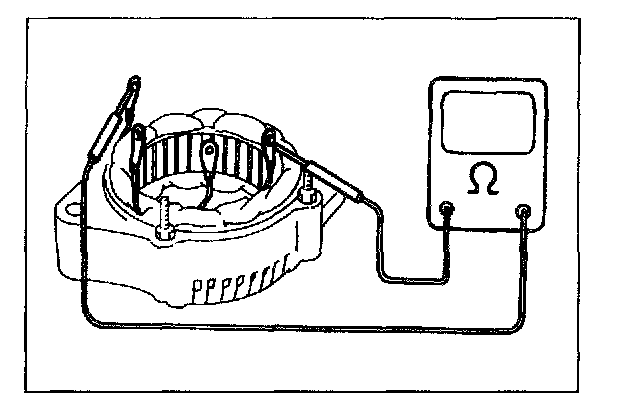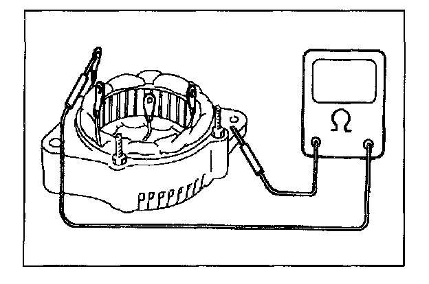 - Using ohmmeter, check that there is no continuity between coil leads and stator core. If there is continuity, replace stator.