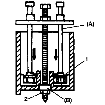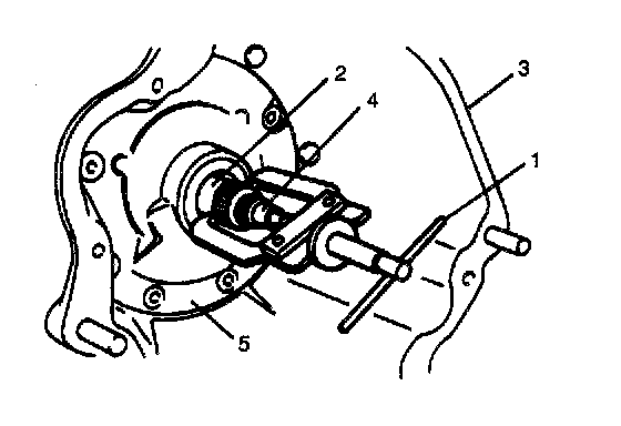 7. Remove oil pump (5) by using puller (1).