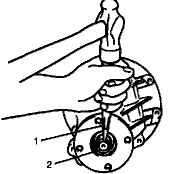 11. Upon completion of gear tooth contact check in step 9), caulk flange nut (2) with caulking tool (1) and hammer.