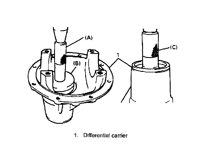 1. Press-fit side bearing (1)with special tool and press.