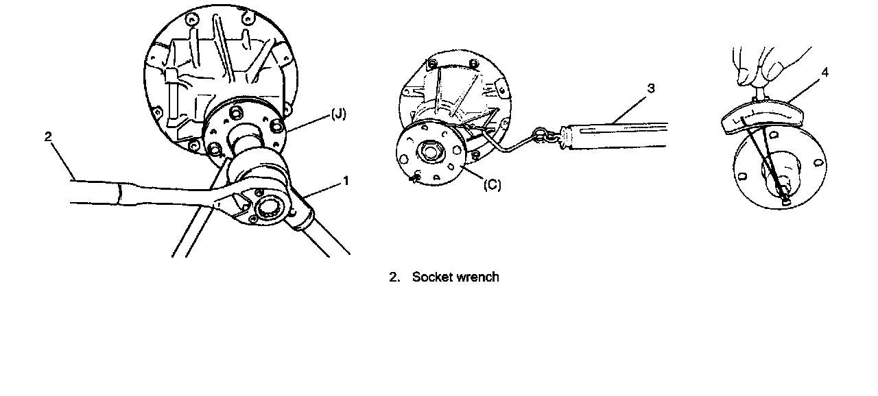 ^ Before taking measurement with spring balance (2) or torque wrench (3), check for rotation by hand and apply small amount of differential oil to bearings.