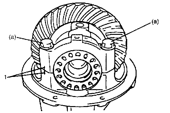 6. Clean and degrease mating surface of drive bevel gear (hypoid gear) (1).