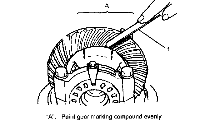a. After cleaning 10 drive bevel gear teeth, paint them with gear marking compound evenly by using brush (1) or sponge etc.