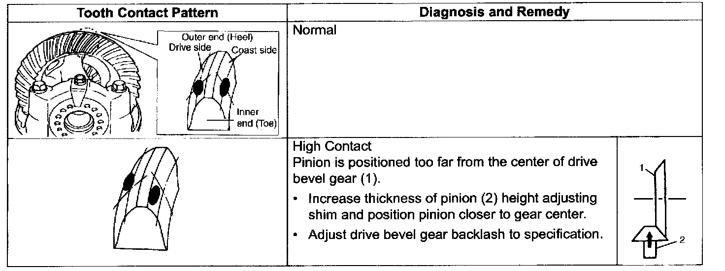 c. Bring painted part up and check contact pattern. If contact pattern is not normal, readjust or replace as necessary according to instruction in the table.