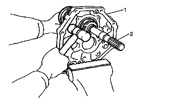 7. Install reverse idle gear (1) and shaft (2).
