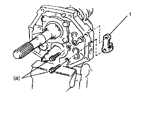 33. Insert 5th-reverse gear shift shaft (1) to reverse gear shift yoke and drive pin into shaft and yoke.