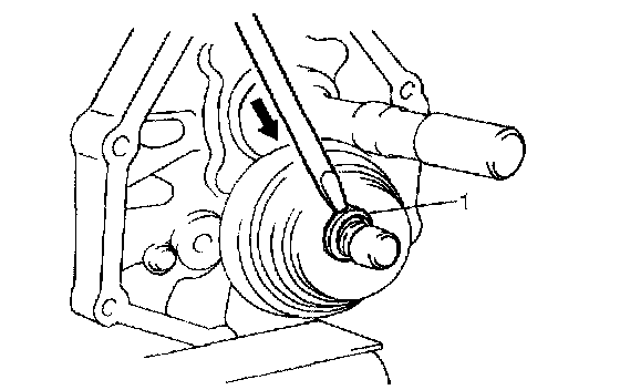 18. Fix new circlip (1) to high gear shift shaft by using lever or the like and hammer.