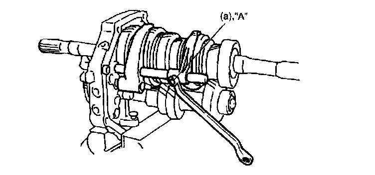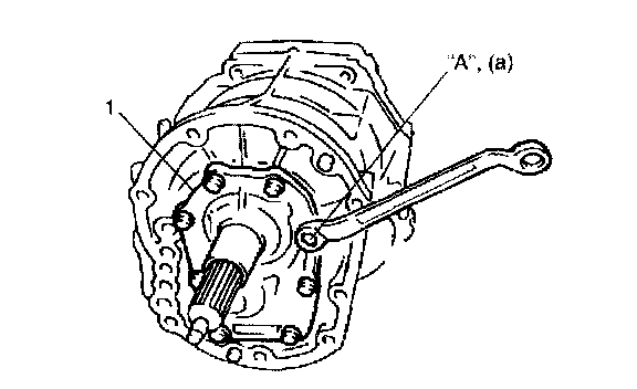 39. Apply cement "A" to input shaft bearing retainer bolt and install input shaft bearing retainer (1), new gasket and its bolts.