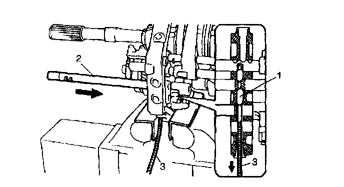 42. With tip end of gear shift shaft inner lever (1) hooked on head of gear shift shaft (2), insert gear shift inner shaft (3) into gear shift shaft inner lever.