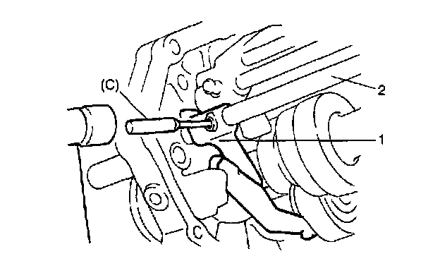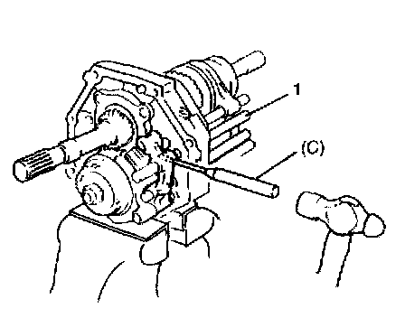 28. Drive pin into reverse gear shift link (1) and shaft by using special tool (C).
