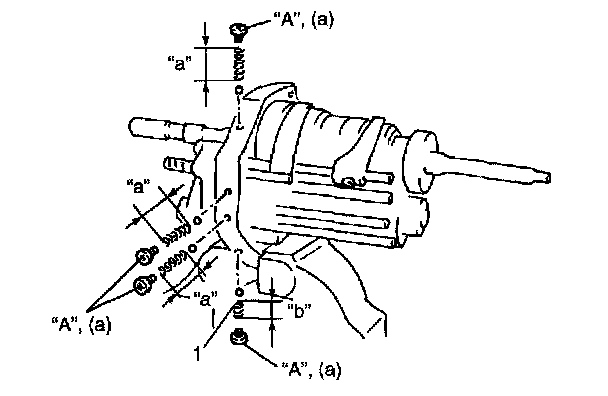 43. Apply cement "A" to inner gear shift shaft bolt/plug and tighten them to specification.