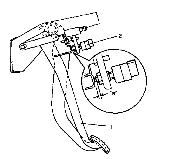 Clutch Pedal Position (CPP) Switch AdjustmentWith clutch pedal (1) released, adjust switch (2) position so that clearance between end of thread and clutch pedal bracket is within specification.