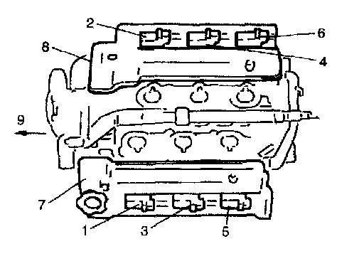 - The 6 cylinders of the engine are identified by numbers; No.1 (1), No.2 (2), No.3 (3), No.4 (4), No.5 (5) and No.6 (6) as counted from crankshaft pulley side (9) to flywheel side.