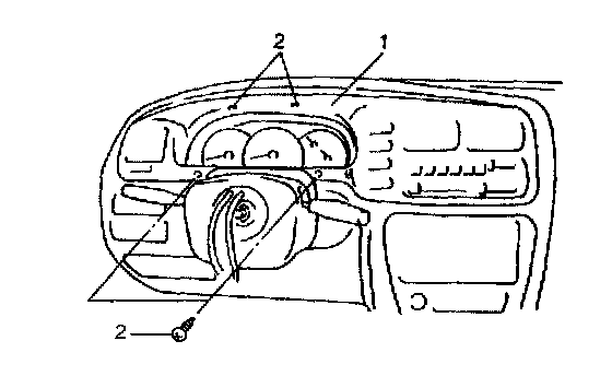 4. Remove meter cluster hood (1) by removing its mounting screws (2).