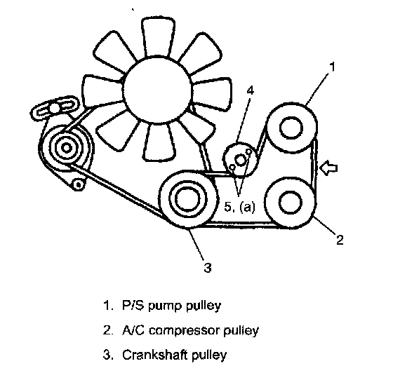 A/C Compressor Drive Belt Inspection1. To adjust A/C compressor drive belt tension, loosen tension pulley bolts (5) and turn tension pulley (4) using hexagon wrench.