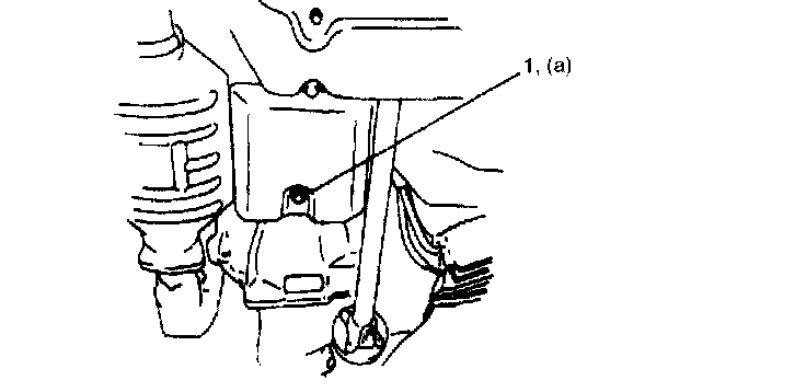 2. With engine is cool, remove drain plug (1) from oil pan and drain A/T fluid.