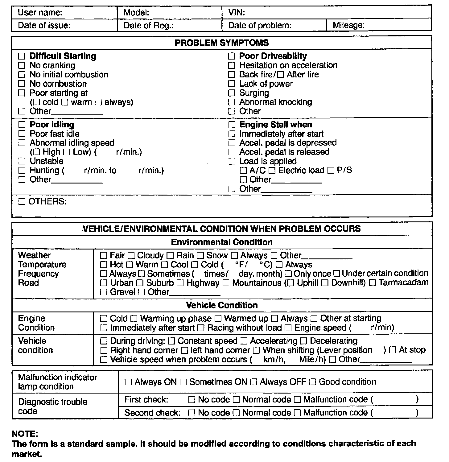 Customer Problem Inspection Form (Example)