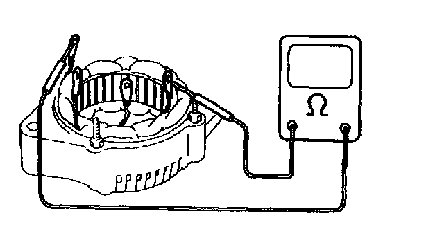 - Using ohmmeter, check that there is no continuity between coil leads and stator core. If there is continuity, replace stator.