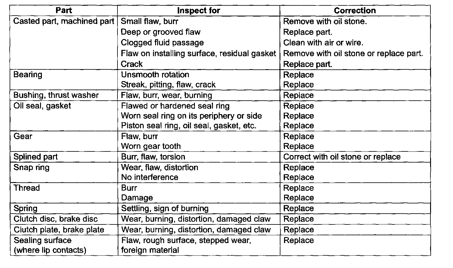 Precautions for Disassembly and ReassemblyAs the automatic transmission consists of high precision components, the following cautions should be strictly observed when handling its parts in disassembly and reassembly.