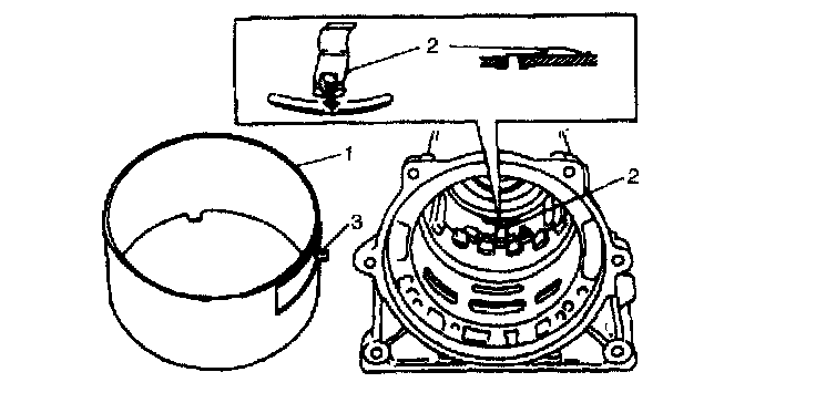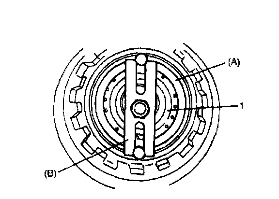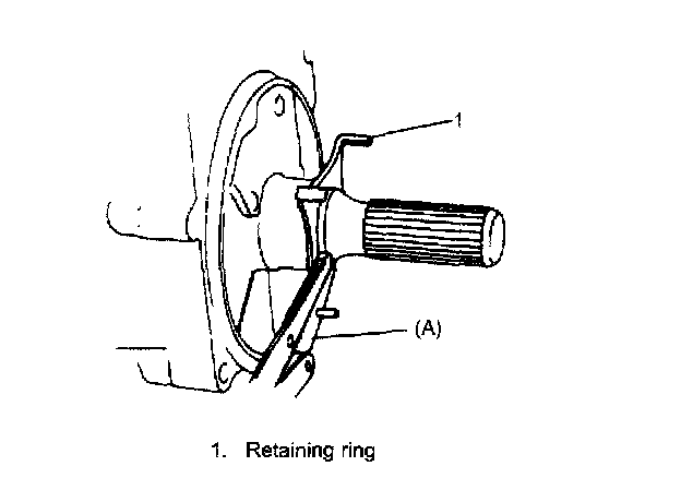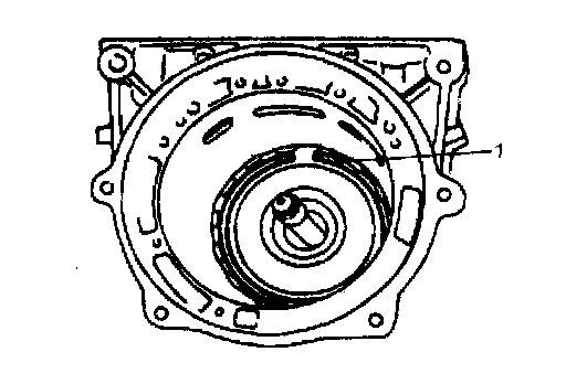 9. Using screwdriver with vinyl tape or the like wound at its tip, install retaining reaction plate ring (1). After installation, check that ring is in groove securely.