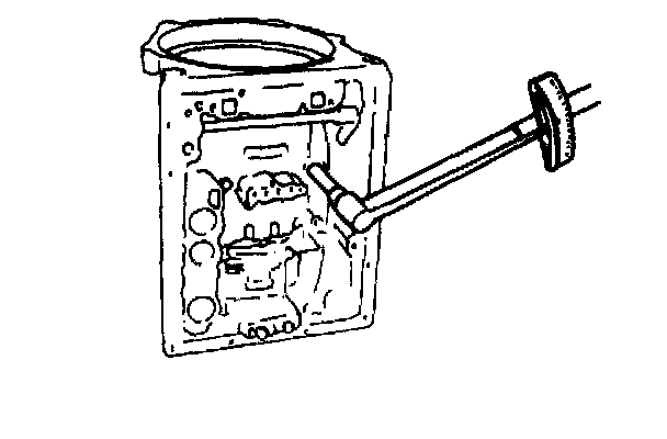^ To protect transmission case against damage, spread cloth on stand where case contacts.