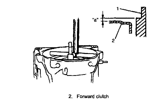Standard height difference between forward clutch input shaft and transmission case "a": About 2.0 mm (0.079 inch)