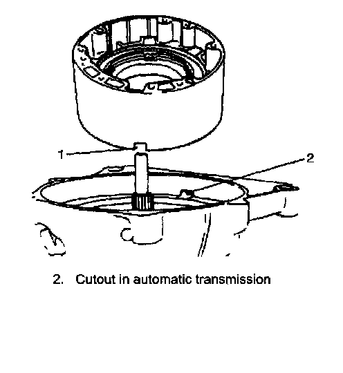 17. Install O/D case by aligning cutout in O/D case (1) and that in transmission case.