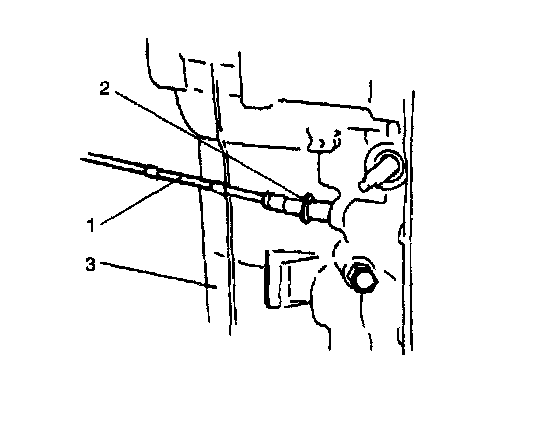 32. Apply A/T fluid to new throttle cable O-ring (2) and install it to throttle cable then connect throttle cable (1) to transmission case (3).