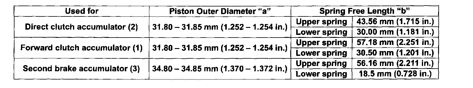 Accumulator piston and spring specification