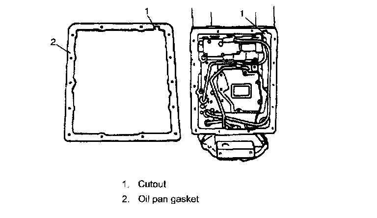 NOTE: Align cutout in oil pan gasket with that in transmission case.