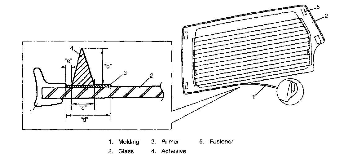 - Before applying primer to glass edge, install molding according to installing position shown in the figure.
