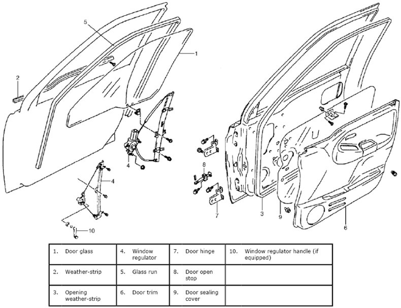 Front Door Window Regulator Removal and InstallationFront Door Glass Components: