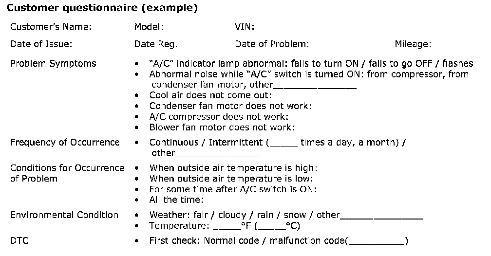 Air Conditioning System Symptom Diagnosis
