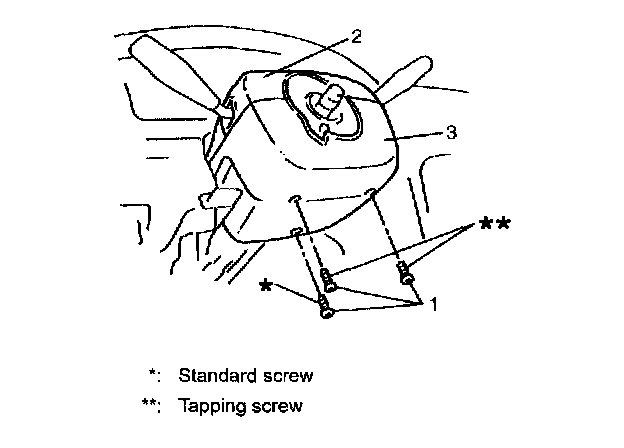 4. Install steering column upper cover (2) and lower cover (3), and then tighten steering column cover screws (1).