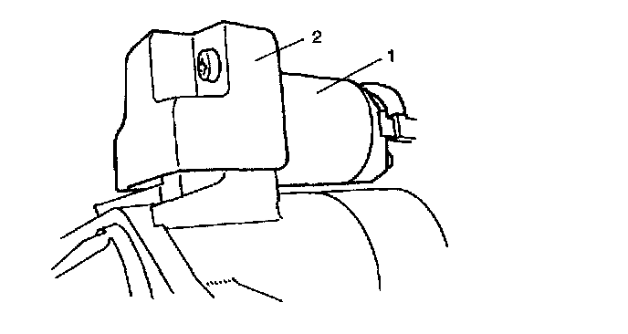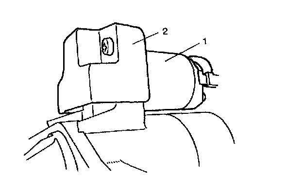 16. Install magnetic switch assembly (1) and protector (2) (if equipped). Connect wire (switch to motor) to switch terminal.
