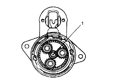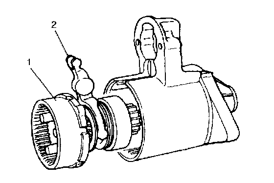 2. Remove bolts (1) shown in figure, then separate reduction gear assembly (2) from starting motor assembly.