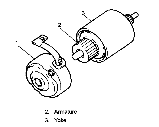 14. Install yoke, armature, brush holder and rear bracket to front housing (2) by aligning match marks provided before removal.