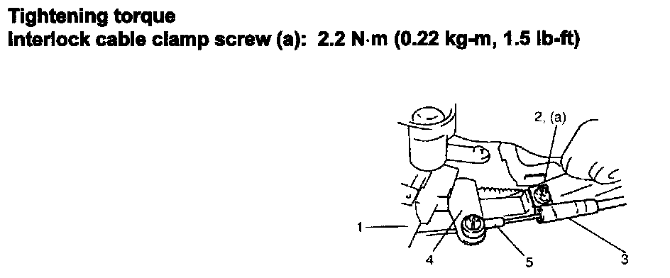 2) Connect inner end (5) of interlock cable to key interlock lever (4) (ignition switch side).